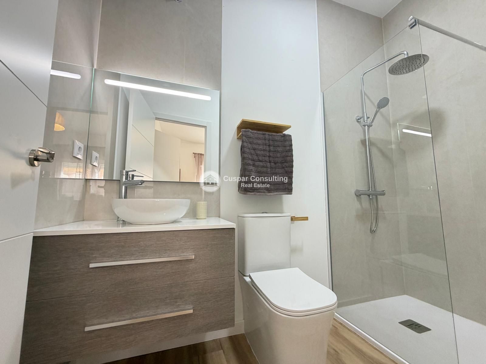 Die Wohnung wird komplett möbliert übergeben und ist vom ersten Tag an bezugsfertig, ohne dass zusätzliche Investitionen erforderlich sind. Die private Terrasse bietet den begehrten Außenbereich, um sich zu entspannen und das hervorragende Klima der Region zu genießen.