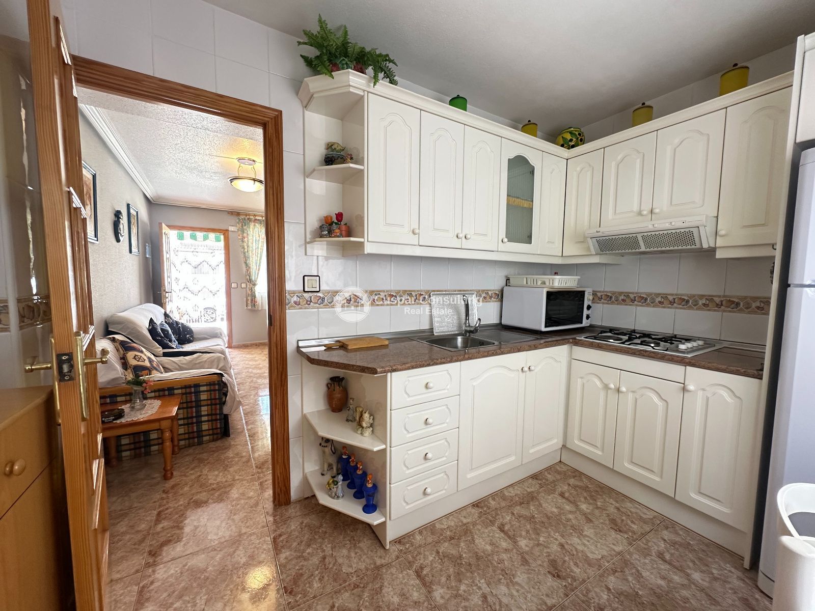 The property features 2 bedrooms and 2 bathrooms, offering a comfortable and functional space suitable for both holiday stays and as a permanent residence. It boasts fitted wardrobes that maximise storage space, a cosy front terrace perfect for enjoying the Mediterranean climate, and a small internal courtyard that provides additional ventilation and natural light.