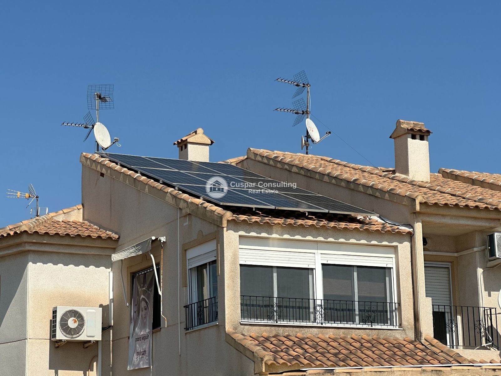 Cuenta con cocina reformada, aire acondicionado, calefacción central de gasoil y placas solares, lo que garantiza confort y eficiencia. Incluye además un amplio garaje con capacidad para 3 coches y puerta automatizada, así como acceso a piscina comunitaria.