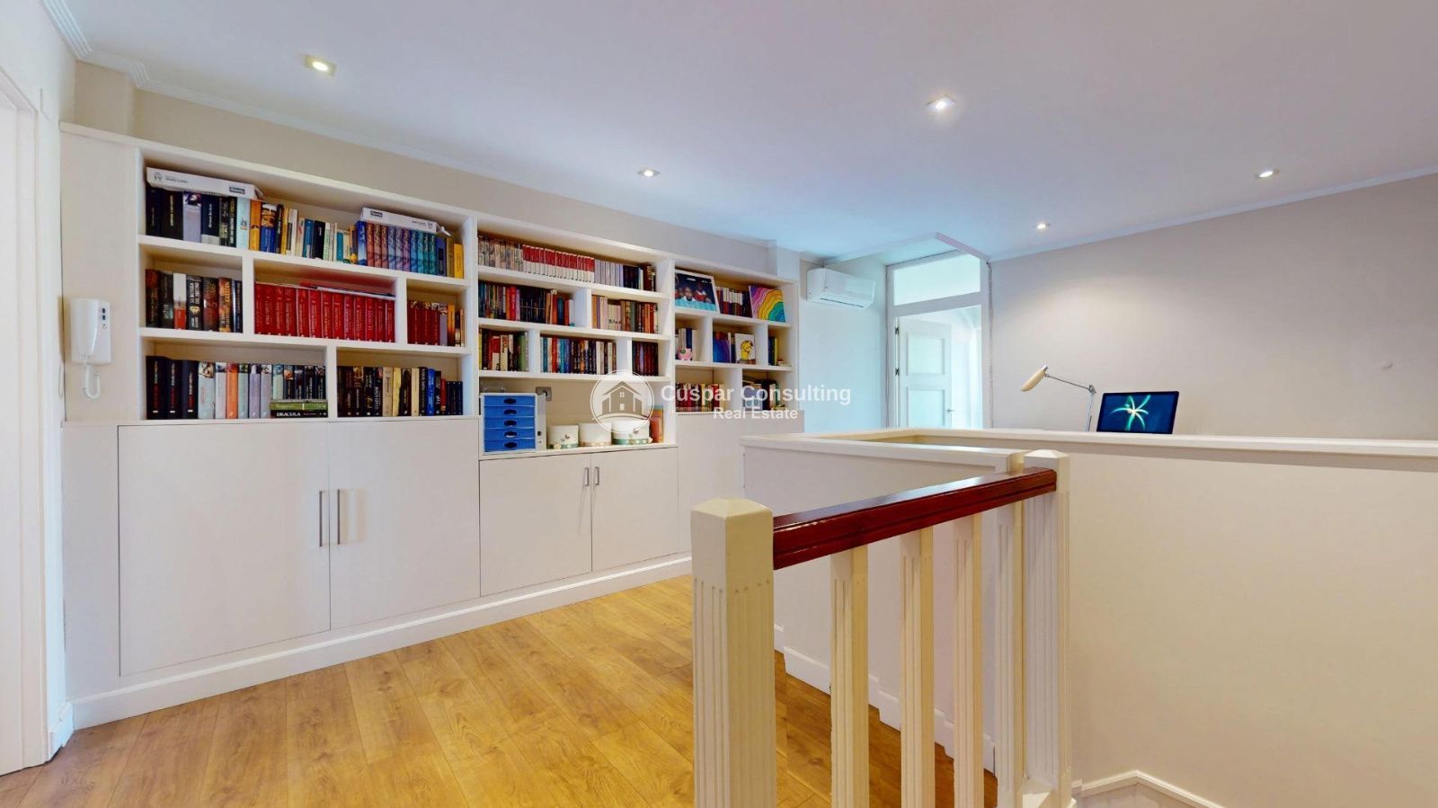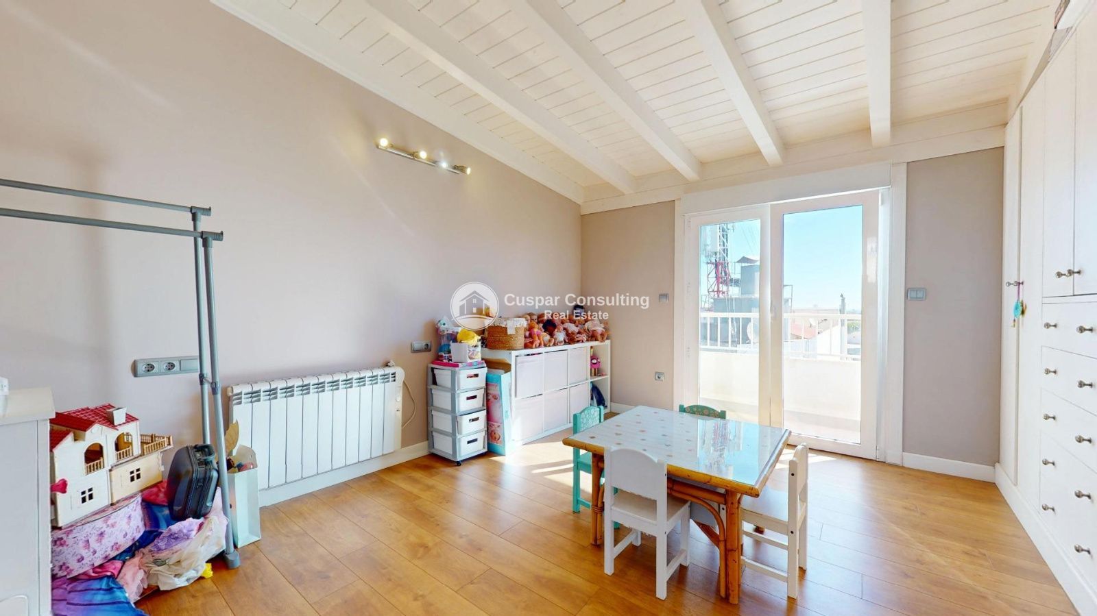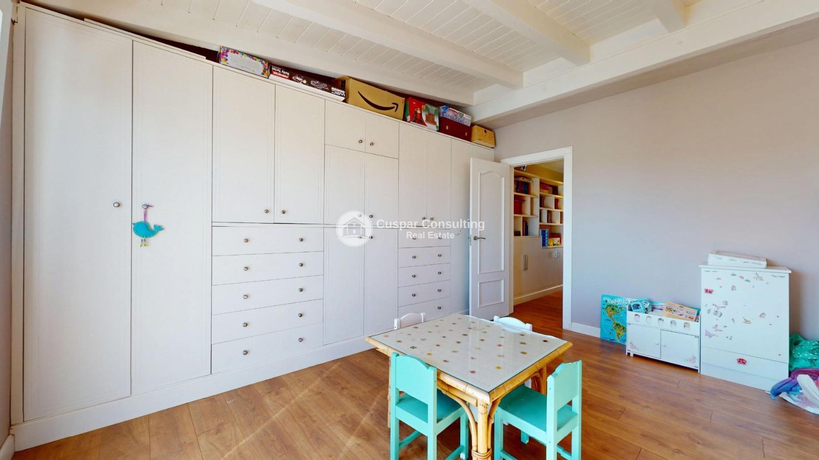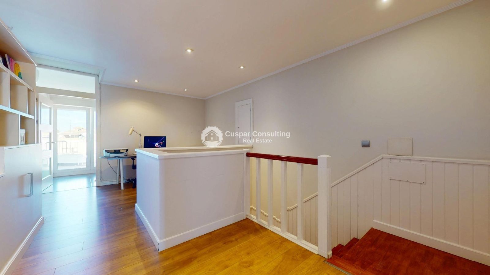 La maison est complétée par un dernier étage très polyvalent, qui abrite une pièce supplémentaire idéale comme salon, bureau ou espace de loisirs, reliée à une grande chambre avec vue dégagée, d'où l'on peut même apercevoir la mer.